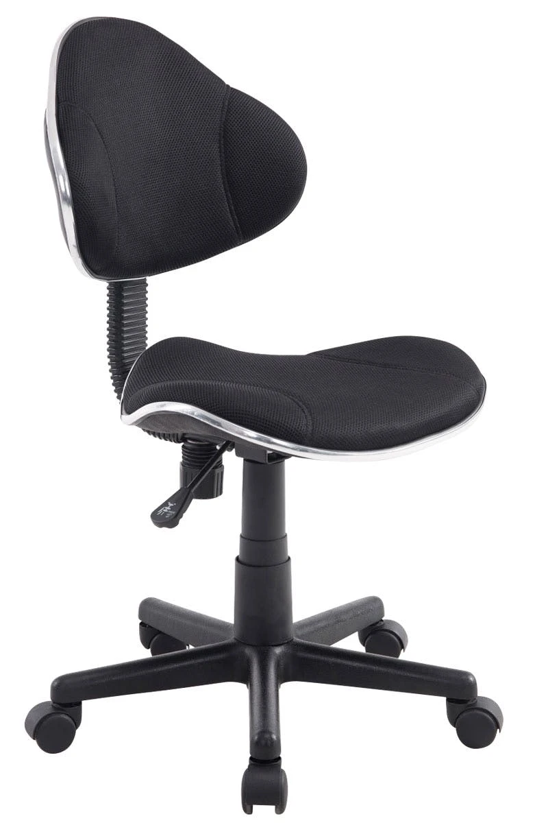 Das Gestell ist aus Hartplastik und sehr stabil. Der Stuhl steht standsicher auf fünf Leichtlaufrollen. Die Sitzhöhe ist stufenlos verstellbar.