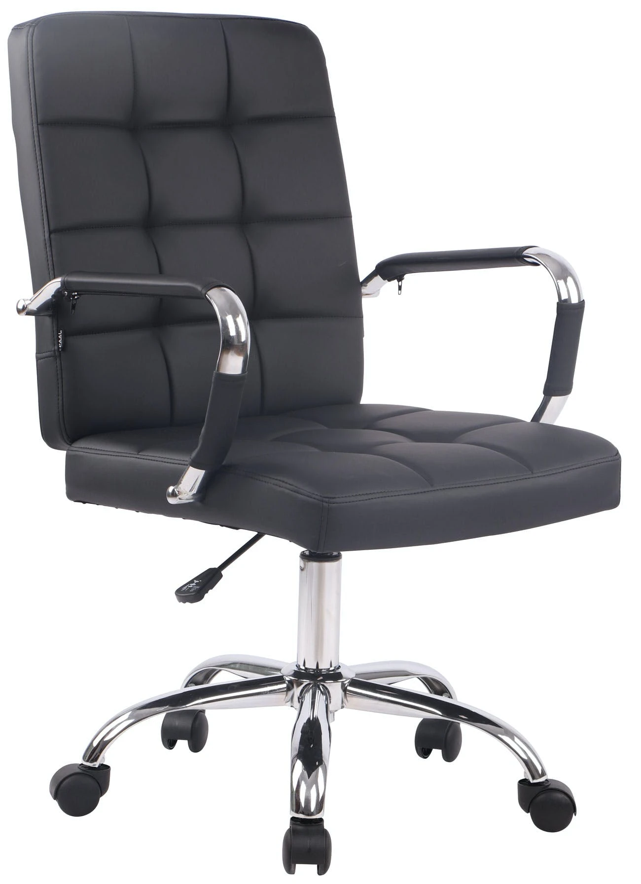 Der Kunstlederbezug mit den schönen Ziernähten sieht nicht nur edel aus, er ist auch besonders robust und pflegeleicht. Die Sitzhöhe ist mit dem Hebel unter dem Sitz stufenlos verstellbar. Dadurch ist ein hoher Komfort während des Arbeitens über einen längeren Zeitraum garantiert. Zudem verspricht das Gestell aus Metall in Chromoptik eine lange Lebensdauer. Der Bürostuhl steht standsicher auf fünf Leichtlaufrollen. Egal ob Hart- oder Teppichböden – Sie werden immer leicht und locker über den Boden rollen können.