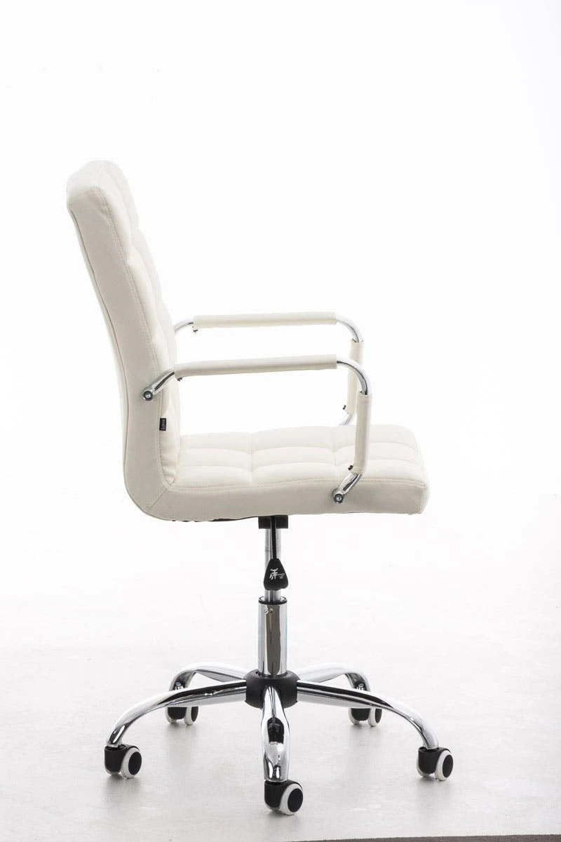 Der Bürosessel Deli V2 beeindruckt durch sein modernes Design und bietet durch die Rückenlehne hohen Komfort während des Arbeitens. Dieser exklusive Bürostuhl Deli V2 ist mit einer sehr hochwertigen Polsterung und Kunstlederbezug versehen. Kunstlederbezüge haben den Vorteil, dass sie elastisch sind und sich bei Entlastung wieder glatt ziehen. Dies sieht nicht nur schöner aus, sondern erhöht zusätzlich die Lebensdauer des Sitzbezuges. Das Gestell ist aus Metall in Chromoptik und dadurch sehr stabil. Dank der verstellbaren Sitzhöhe ist ergonomisches Sitzen garantiert. Die Sitzhöhe ist mit dem Hebel unter dem Sitz stufenlos verstellbar. Der Bürostuhl steht standsicher auf fünf Leichtlaufrollen. Egal ob Hart- oder Teppichböden – Sie werden immer leicht und locker über den Boden rollen können.