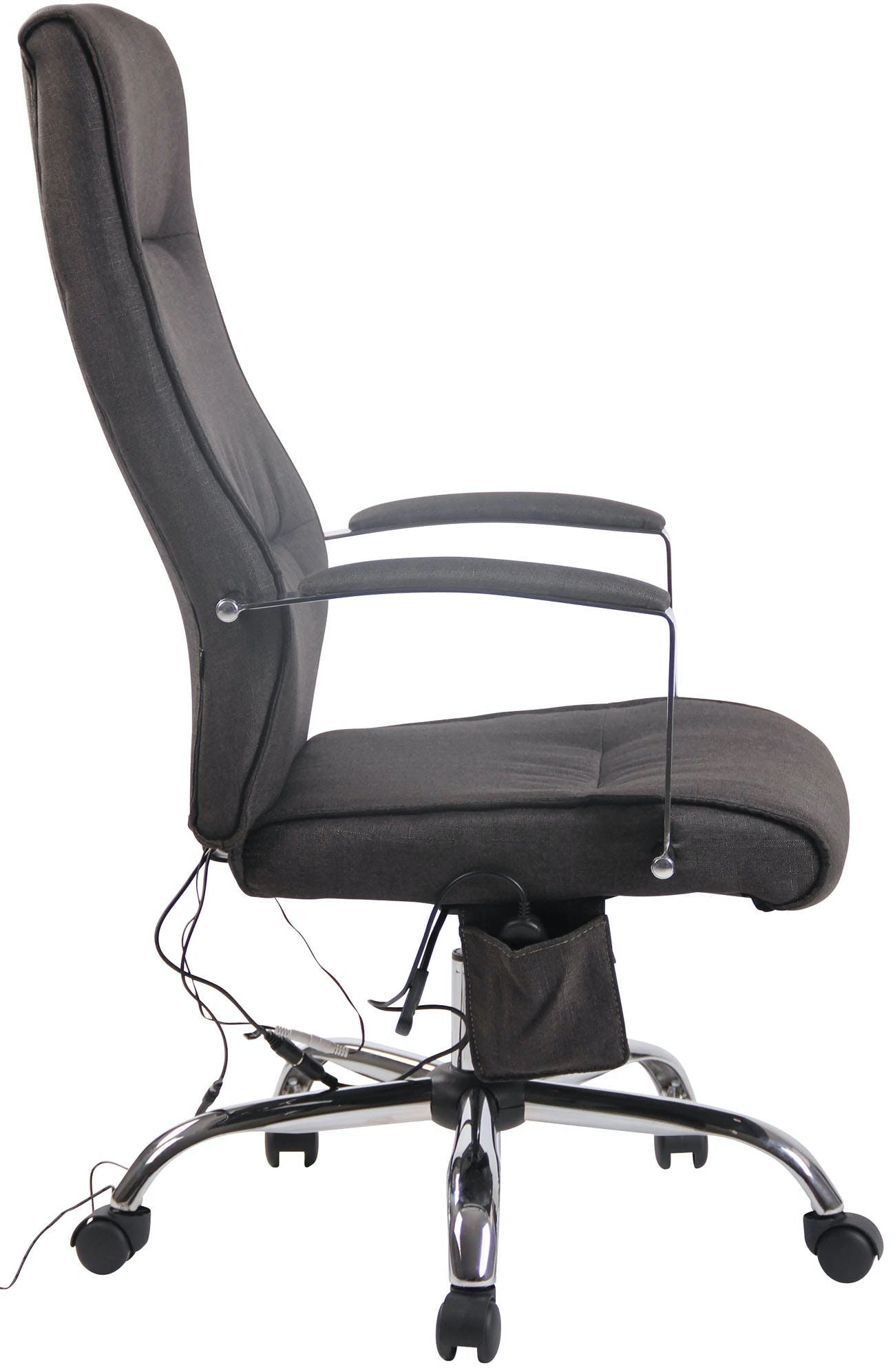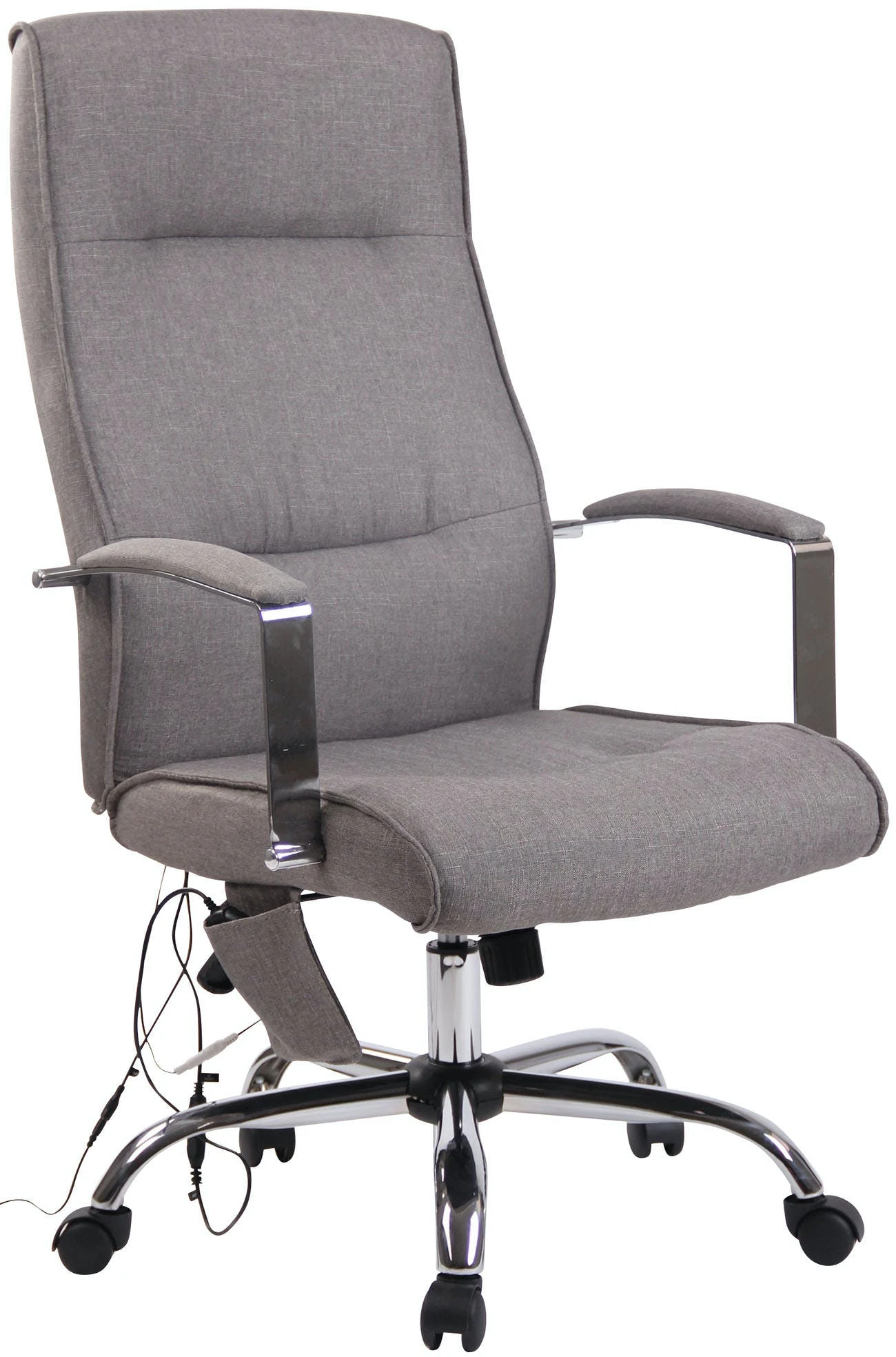 La función de masaje integrada en la silla de oficina Portland es la característica principal de esta silla, junto con un diseño moderno y un estilo elegante la silla destaca por su comodidad y funcionalidad. La silla masajeante tiene un agradable acolchado y un tapizado en dos materiales diferentes, a su elección: tela o cuero sintético. La silla de oficina es ajsutable en altura, su asiento es giratorio y el respaldo cuenta con un mecanismo de balanceo, estas características permiten mayor confort de sentado y libertad de movimientos. La base de la silla es en forma de cruz, hecha en metal cromado, y se apoya en 5 ruedas deslizantes.