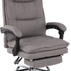 Komfort ist mit dem Bürostuhl Power im klassischen Look angesagt. Eine hochwertige Polsterung und ein pflegeleichter Stoffbezug sorgen für ein komfortables Sitzgefühl, welches auch bei längerem Verweilen bestehen bleibt. Die leicht verstellbare Fußstütze und Rückenlehne sorgen zusätzlich für eine angenehme Pause zwischendurch, bei der sich entspannt zurückgelehnt werden darf und die Beine hochgelegt werden können. Dank der stufenlos verstellbaren Sitzhöhe garantiert der Chefsessel zudem jederzeit ein ergonomisches Sitzen. Dabei steht er standsicher auf fünf Leichtlaufrollen und einem Gestell aus Metall in Chromoptik. Egal ob Hart- oder Teppichböden – man kann immer leicht und locker über den Boden rollen.