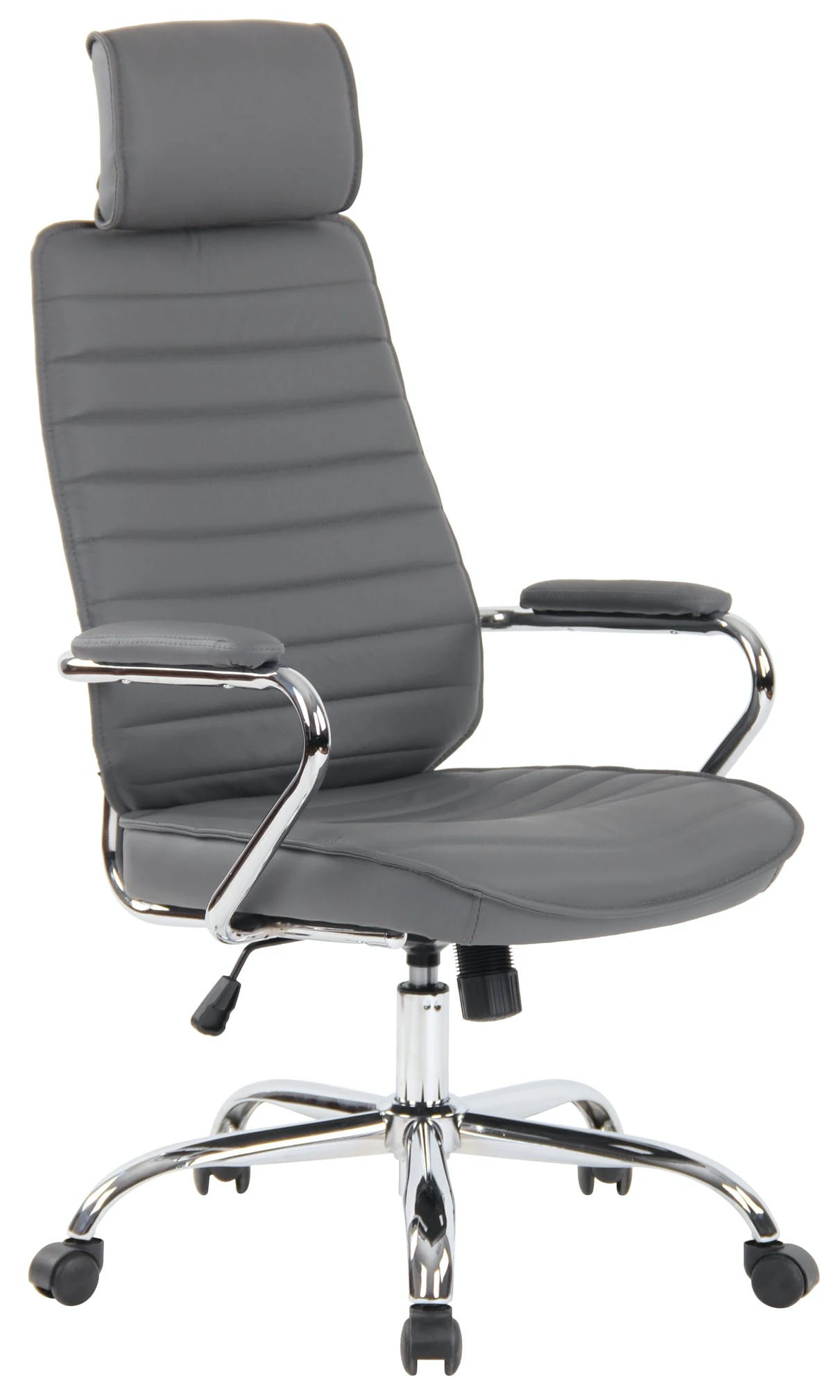 Der Chefsessel Rako ist ein Bürostuhl mit einer sehr hochwertigen Polsterung und moderner Optik. Dabei sieht der Echtlederbezug nicht nur sehr schön aus, er ist auch besonders robust und pflegeleicht. Ein stabiles Metallgestell in Chromoptik sorgt zusätzlich für einen sicheren Stand. Die Sitzhöhe ist stufenlos verstellbar und garantiert ein ergonomisches Sitzen auch über Stunden hinweg. Der eingebaute Wippmechanismus sorgt zudem für mehr Bewegungsfreiheit. Der Drehstuhl Rako steht fest auf fünf Leichtlaufrollen. Egal ob Hart- oder Teppichböden – Sie werden immer leicht und locker über den Boden rollen können.