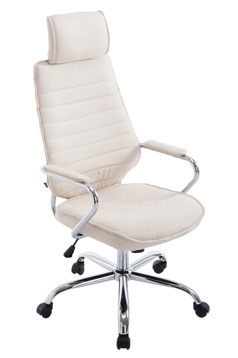 Der Chefsessel Rako Stoff ist ein Bürostuhl mit einer sehr hochwertigen Polsterung und modernen Stoffoptik. Dabei sieht der Stoffbezug nicht nur schön aus, er ist auch besonders robust und pflegeleicht. Ein stabiles Metallgestell in Chromoptik sorgt zusätzlich für einen sicheren Stand. Zudem ist Dank einer verstellbaren Sitzhöhe das ergonomische Sitzen garantiert. Ein eingebauter Wippmechanismus sorgt für mehr Bewegungsfreiheit. Der Bürostuhl Rako Stoff steht fest auf fünf Leichtlaufrollen. Egal ob Hart- oder Teppichböden – Sie werden immer leicht und locker über den Boden rollen können.