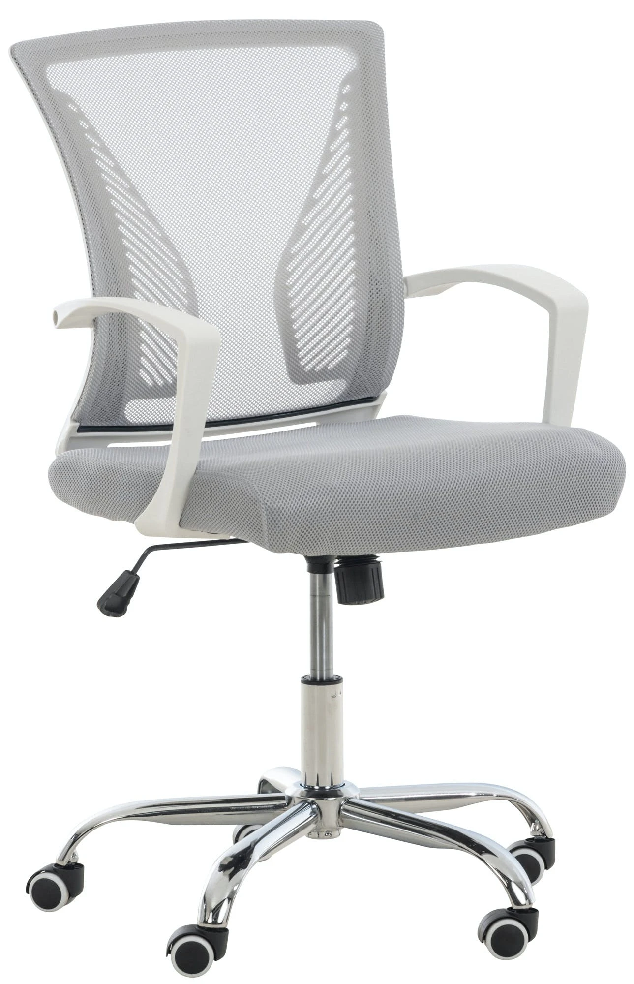 Dieser Bürostuhl beeindruckt durch sein modernes Design und die solide Verarbeitung. Der pflegeleichte Netzbezug sieht nicht nur schön aus, er ist besonders atmungsaktiv. Das ermöglicht ein bequemes Sitzen ohne ins Schwitzen zu kommen. Die Sitzhöhe kann mittels des Hebels unter dem Sitz stufenlos verstellt werden. Dadurch ist ein hoher Komfort während des Arbeitens oder beim Entspannen garantiert. Der Bürostuhl steht standsicher auf fünf gummierten Leichtlaufrollen. Egal ob Hart- oder Teppichböden – Sie werden immer leicht und locker über den Boden rollen können. Das Gestell aus Metall ist in zwei Farben erhältlich.