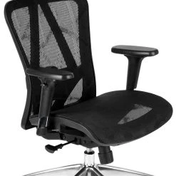Über den BIFMA-zertifizierten Gaslift ist der Drehstuhl höhenverstellbar. Der atmungsaktive Netzbezug von Sitzfläche, Rückenlehne und Kopfstütze schafft weiteren Komfort, während die Sitztiefe individuell angepasst werden kann. Stabilen Stand verleiht dem Drehstuhl schließlich das äußerst robuste Metall-Gestell in Chrom-Optik mit seinen Leichtlaufrollen. Die maximale Belastbarkeit beträgt 150 kg.