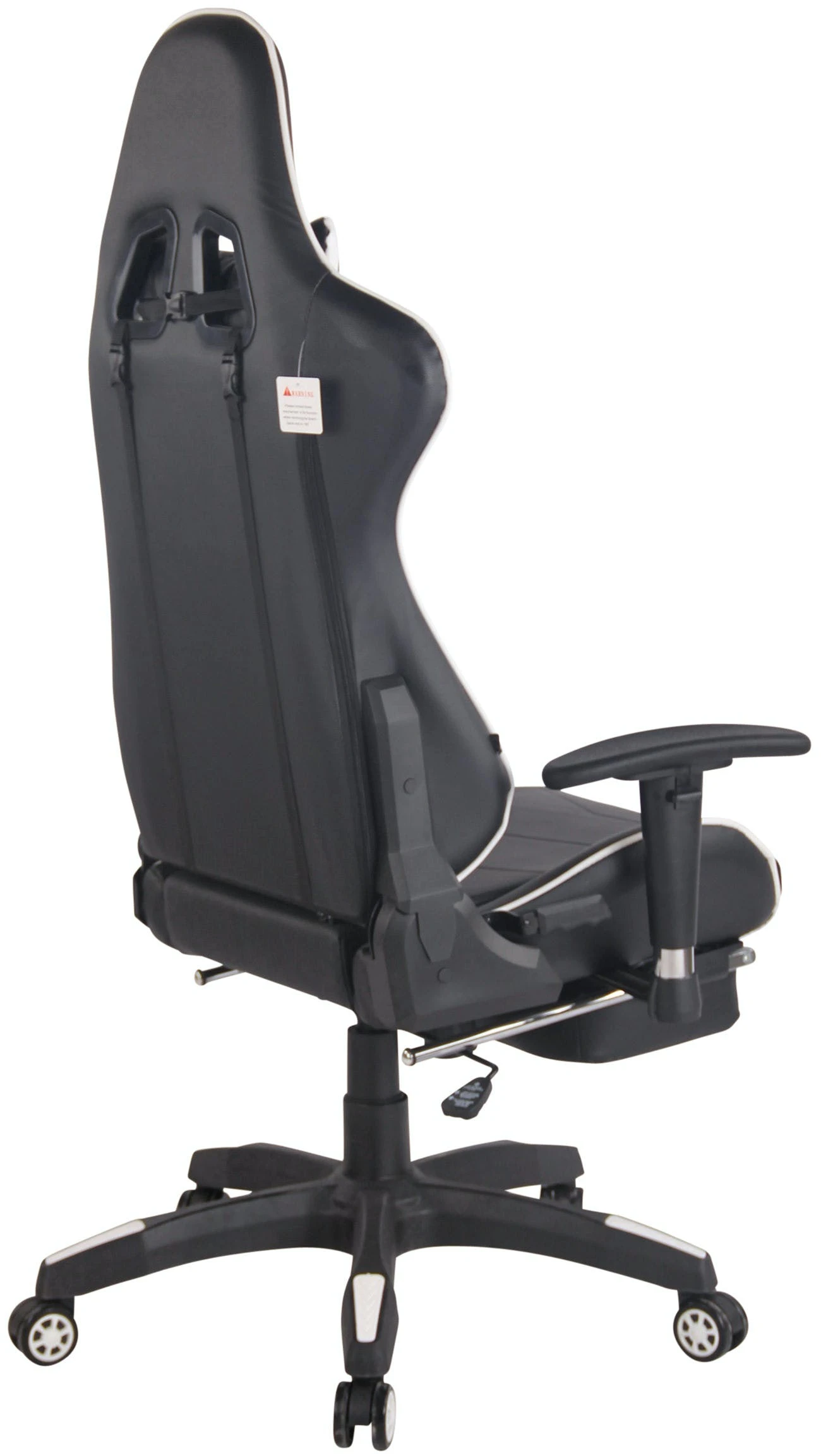Der Bürostuhl Turbo XL überzeugt nicht nur mit seinem sportlichen Look, auch in Sachen Komfort und Belastbarkeit kann ihm keiner etwas vormachen. Die hochwertige Polsterung sorgt für ein komfortables Sitzgefühl, welches auch bei längerem Verweilen bestehen bleibt. Die leicht verstellbare Fußstütze und Rückenlehne sorgen zusätzlich für eine angenehme Pause zwischendurch, bei der sich entspannt zurückgelehnt werden darf und die Beine hochgelegt werden können. Dank der stufenlos verstellbaren Sitzhöhe und der abnehmbaren Nacken- und Rückenkissen garantiert der Schreibtischstuhl jederzeit ein ergonomisches Sitzen. Auch die Höhe der schwenkbaren Armlehnen ist regulierbar. Der Computerstuhl steht standsicher auf fünf Leichtlaufrollen und einem Gestell aus Kunststoff.