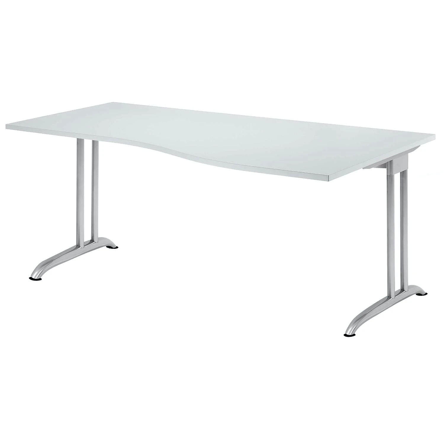 Freiform-Schreibtisch Berlin, mit formschön geschwungenem C-Fuß Design. Der melaminharzbeschichte Schreibtisch auf einem belastbaren Stahl-Rundrohr-Gestell überzeugt durch sein elegantes Design, das sich harmonisch in jede Umgebung und Raumgestaltung einfügt sowie durch seine besonders leicht zu reinigende Oberfläche.Langlebiges, pflegeleichtes, verschweißtes Stahl-Gestell, Stahrohr-Gestell aus Rundrohr, Klassisches, formschön geschwungenes C-Fuß Design, Winkelschreibtisch mit wendbarer Tischplatte, Tiefer Schenkel kann links oder rechts montiert werden, Melaminharzbeschichtete Tischplatte aus Holzspanwerkstoff nach DIN 68765, Tisch- und Arbeitshöhe 720 mm nach DIN-Norm, Gestell einbrennlackiert , Lieferung: Zerlegt verpackt im KartonFarbe: Gestell: RAL 9006 Weißaluminium, Tischplatte: Buche-Dekor.Maße in mm ca.: Höhe: 720 mm, Breite: 1800 mm, Tiefe: 1000/800 mm.