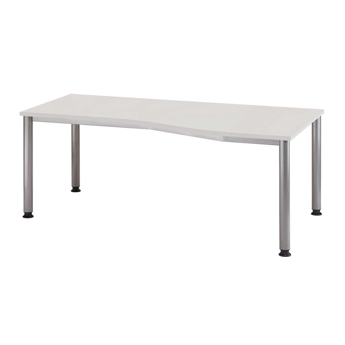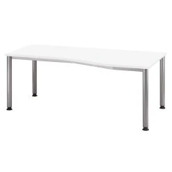 Freiform-Schreibtisch Helsinki, mit klassischem, schlichtem Vier-Fuß-Gestell. Der melaminharzbeschichte Schreibtisch auf einem belastbaren Stahl-Rundrohr-Gestell überzeugt durch sein zeitloses Design, das sich harmonisch in jede Umgebung und Raumgestaltung einfügt sowie durch seine besonders leicht zu reinigende Oberfläche.Langlebiges, pflegeleichtes, verschweißtes Stahl-Gestell, Stahrohr-Gestell aus Rundrohr mit umlaufendem Stahl-Rahmen, Klassisches Vier-Fuß-Gestell, Arbeitshöhe im Raster höhenverstellbar von 680 – 760 mm, Winkelschreibtisch mit wendbarer Tischplatte, Tiefer Schenkel kann links oder rechts montiert werden, 25 mm melaminharzbeschichtete Tischplatte aus Holzspanwerkstoff nach DIN 68765, Gestell einbrennlackiert, Lieferung: Zerlegt verpackt im Karton .Farbe: Gestell: RAL 9006 Weißaluminium, Tischplatte: WeißMaße in mm ca.: Höhe: 680-760 mm, Breite: 1800 mm, Tiefe: 1000/800 mm.