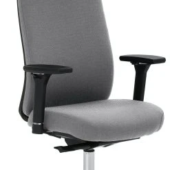 Hoher Rücken, Sitz und Rücken gepolstert, extra stark gepolsterte Sitzfläche für ein Maximum an Komfort, höhenverstellbare Lordosenstütze, stufenlose Höhenverstellung, Stuhl GS-zertifiziert, Typ C nach DIN EN 1335 – 1 (belastbar bis max. 110 kg), Sitzhöhe 48 – 59 cm. 4D-Armlehnen schwarz. Kopfstütze gepolstert. Synchronmechanik mit selbstregulierender Gewichtseinstellung und Sitztiefenverstellung. Alu-Fußkreuz und passende Gasfeder. Inkl. Hartbodenrollen groß, mit Chromblende.