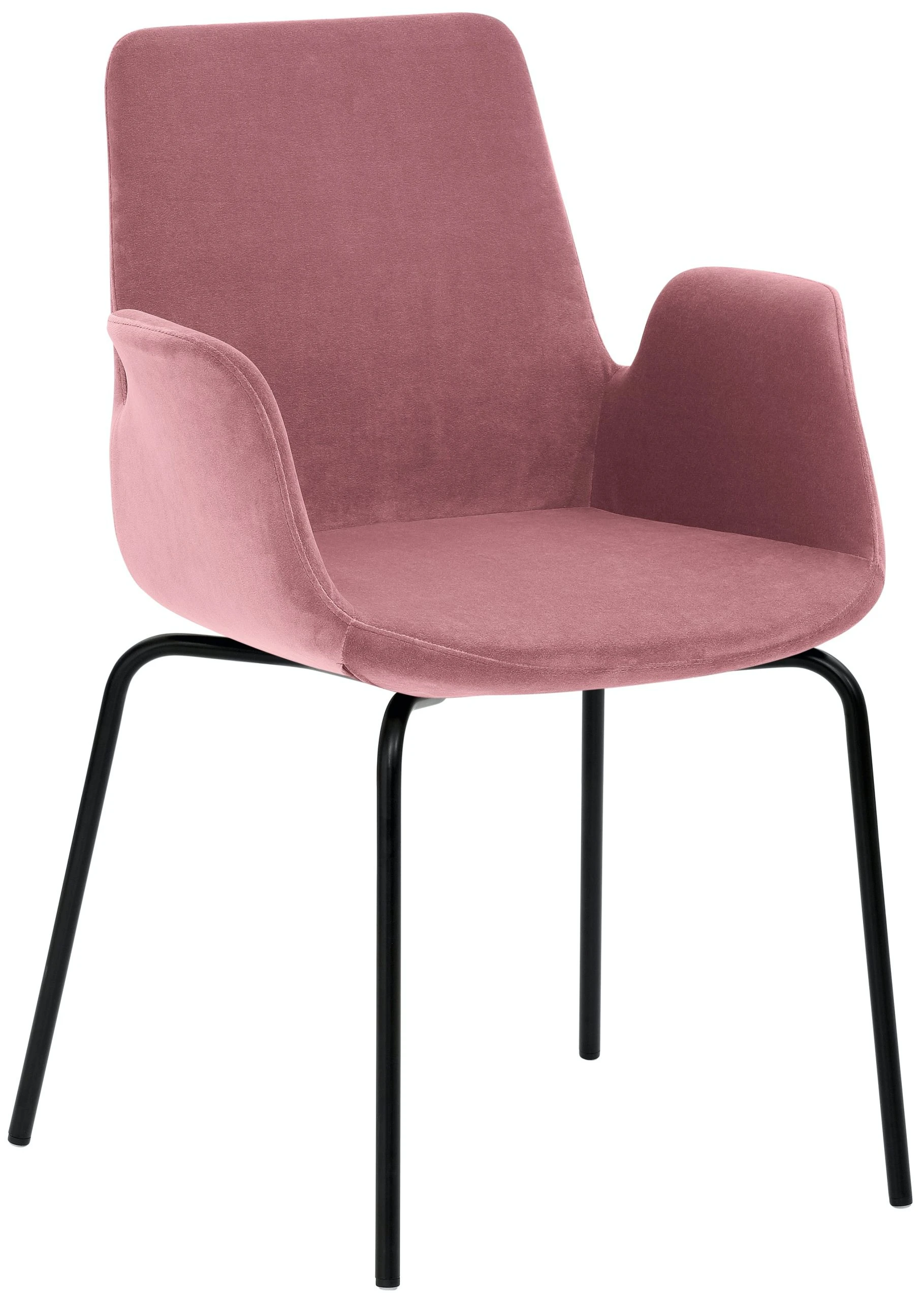 4-Fuß-Gestell, pulverbeschichtet schwarz, mit integrierten Armlehnen, rundum gepolstert, Sitzhöhe 48 cm.