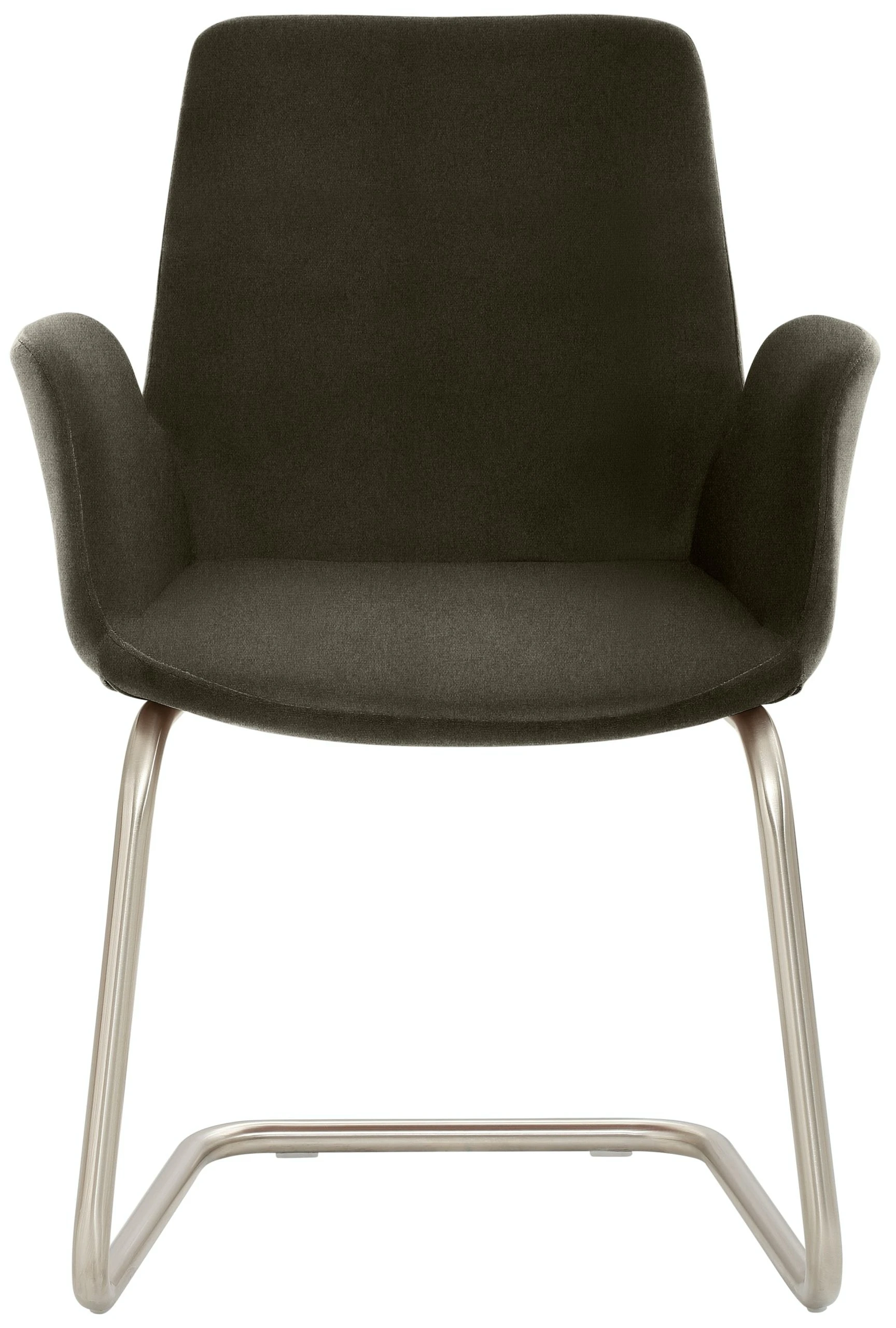 Freischwinger-Gestell, Chrom gebürstet Edelstahllook, mit integrierten Armlehnen, rundum gepolstert, Sitzhöhe 49 cm.
