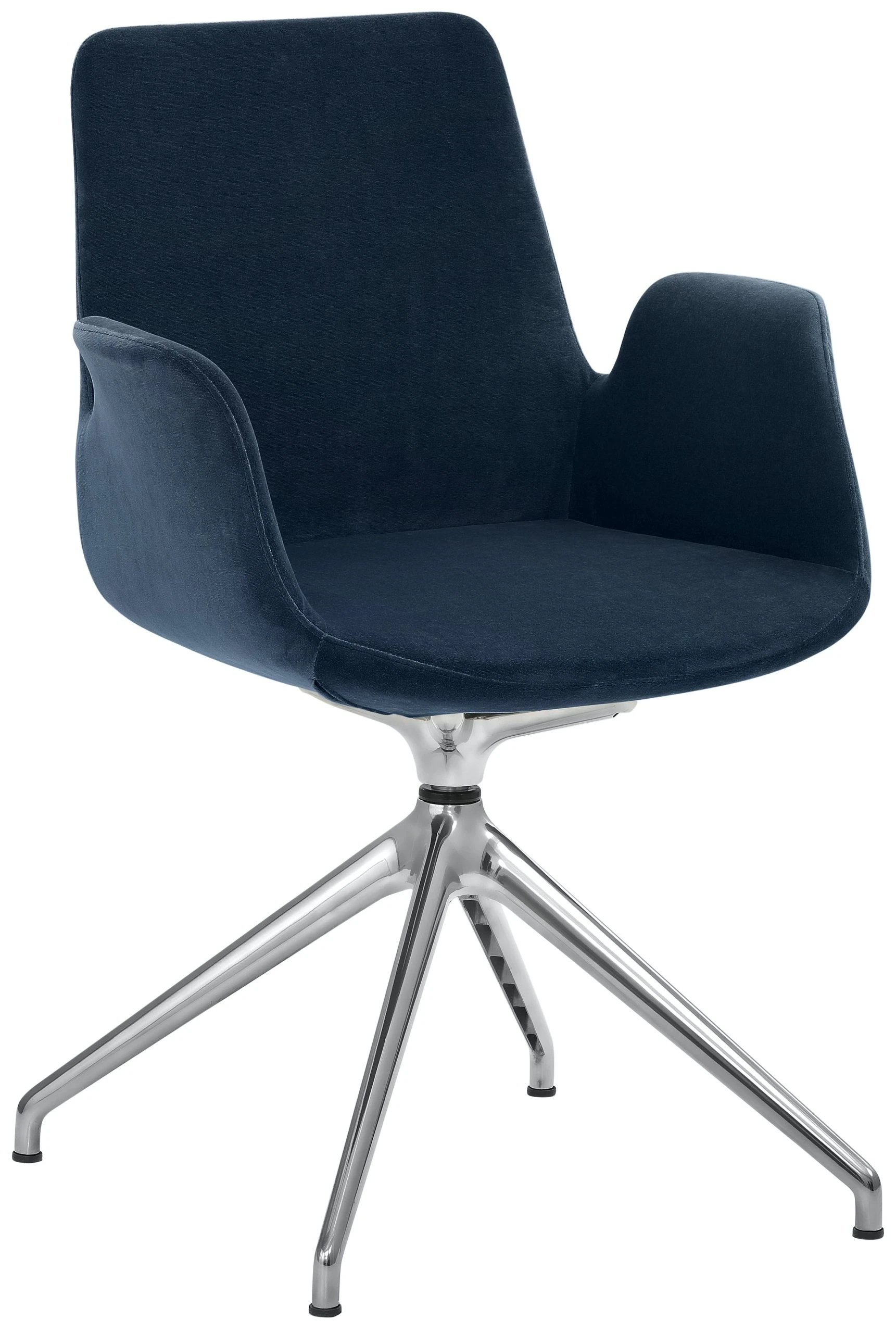 Freischwinger-Gestell, pulverbeschichtet schwarz, mit integrierten Armlehnen, rundum gepolstert, Sitzhöhe 49 cm.
