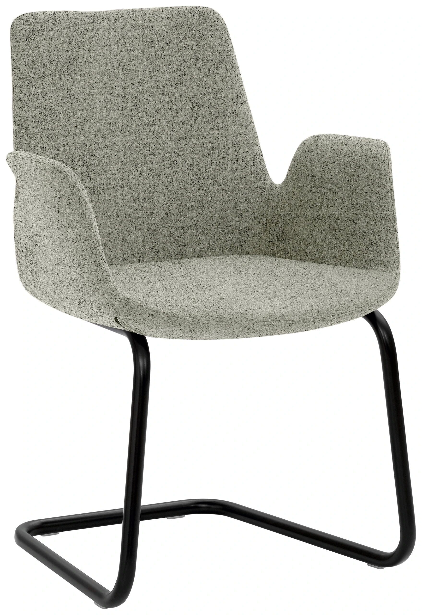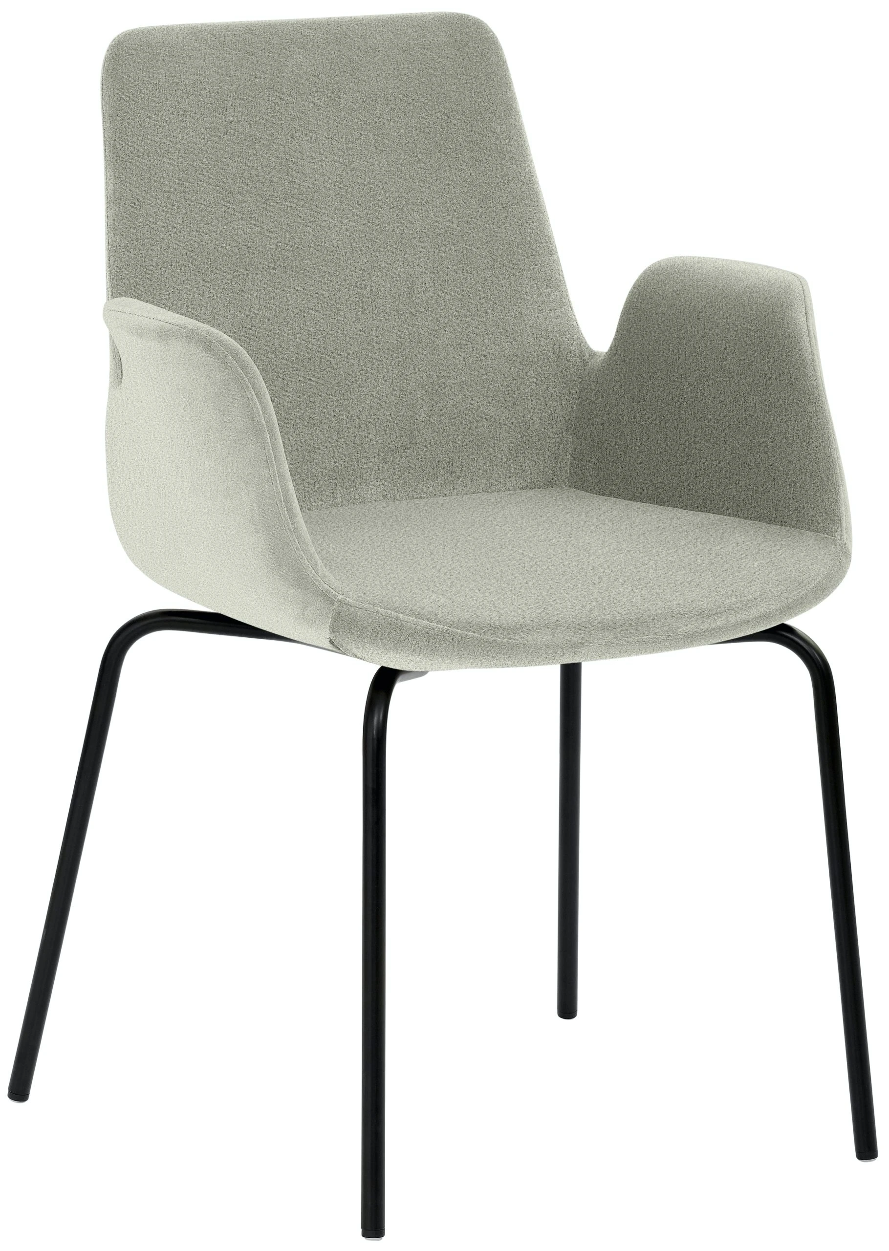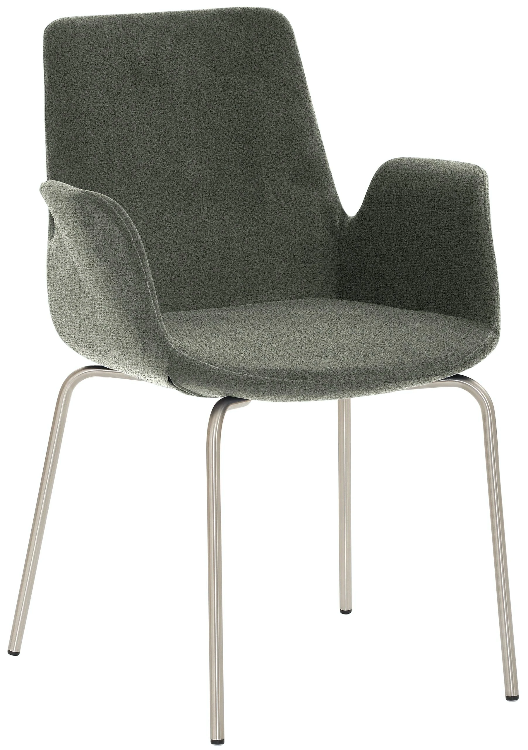Sternfuß-Gestell, Alu poliert, 360° drehbar, mit integrierten Armlehnen, rundum gepolstert, Sitzhöhe 49 cm.