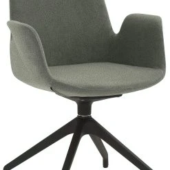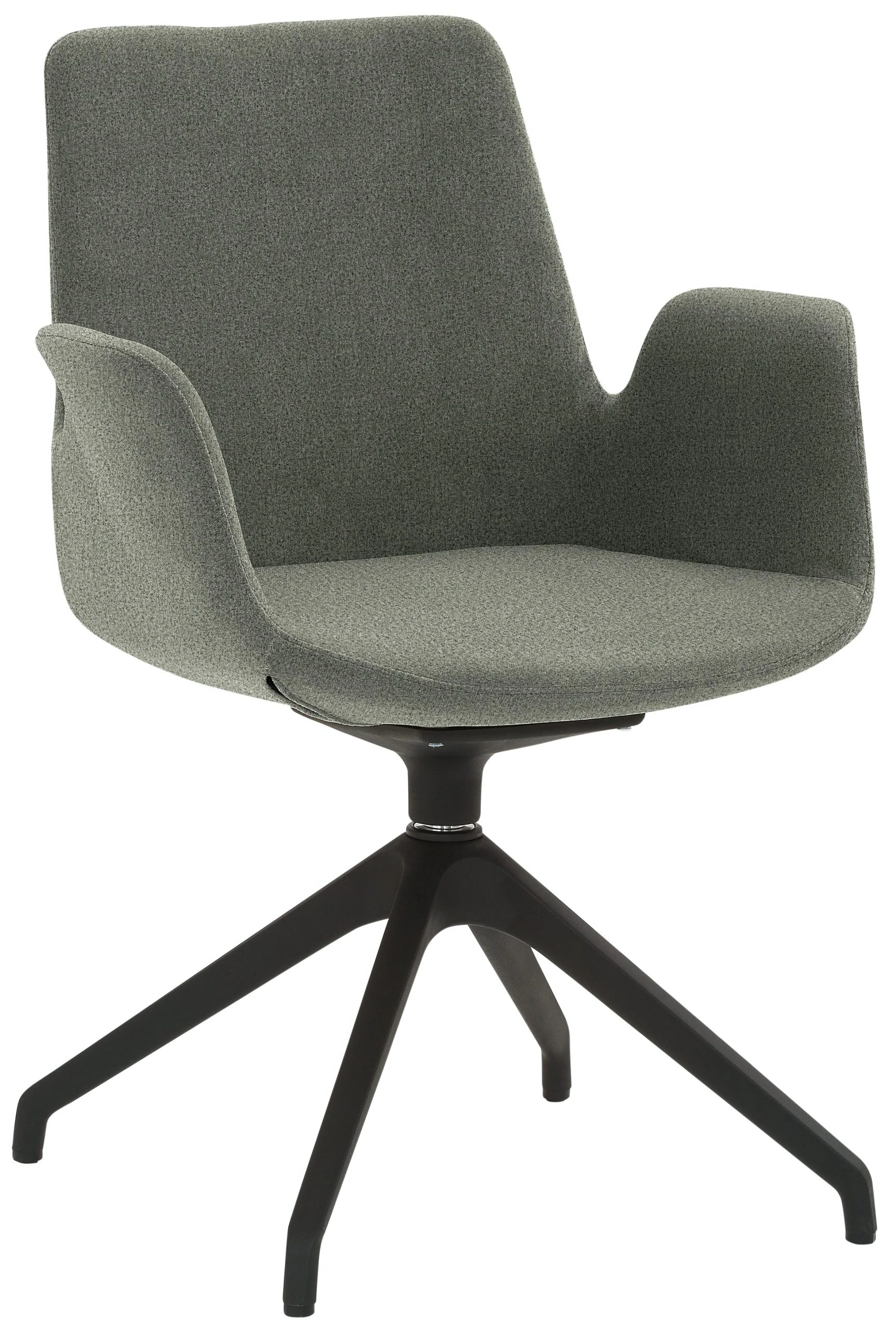 Sternfuß-Gestell, Kunststoff schwarz, 360° drehbar, mit integrierten Armlehnen, rundum gepolstert, Sitzhöhe 49 cm.