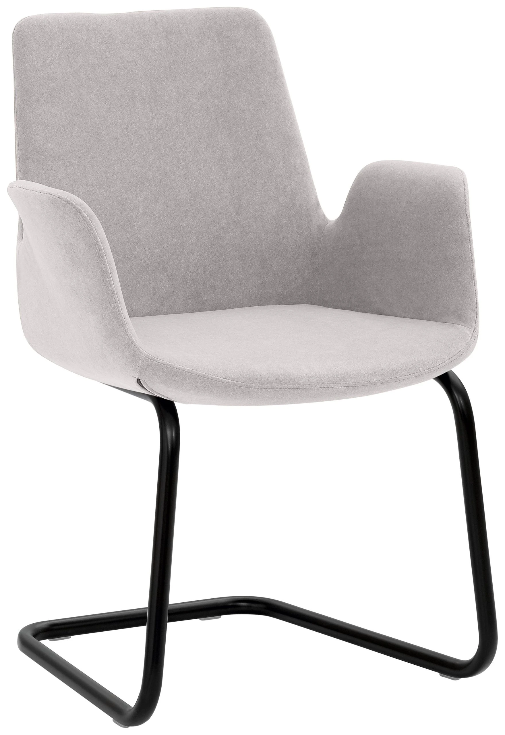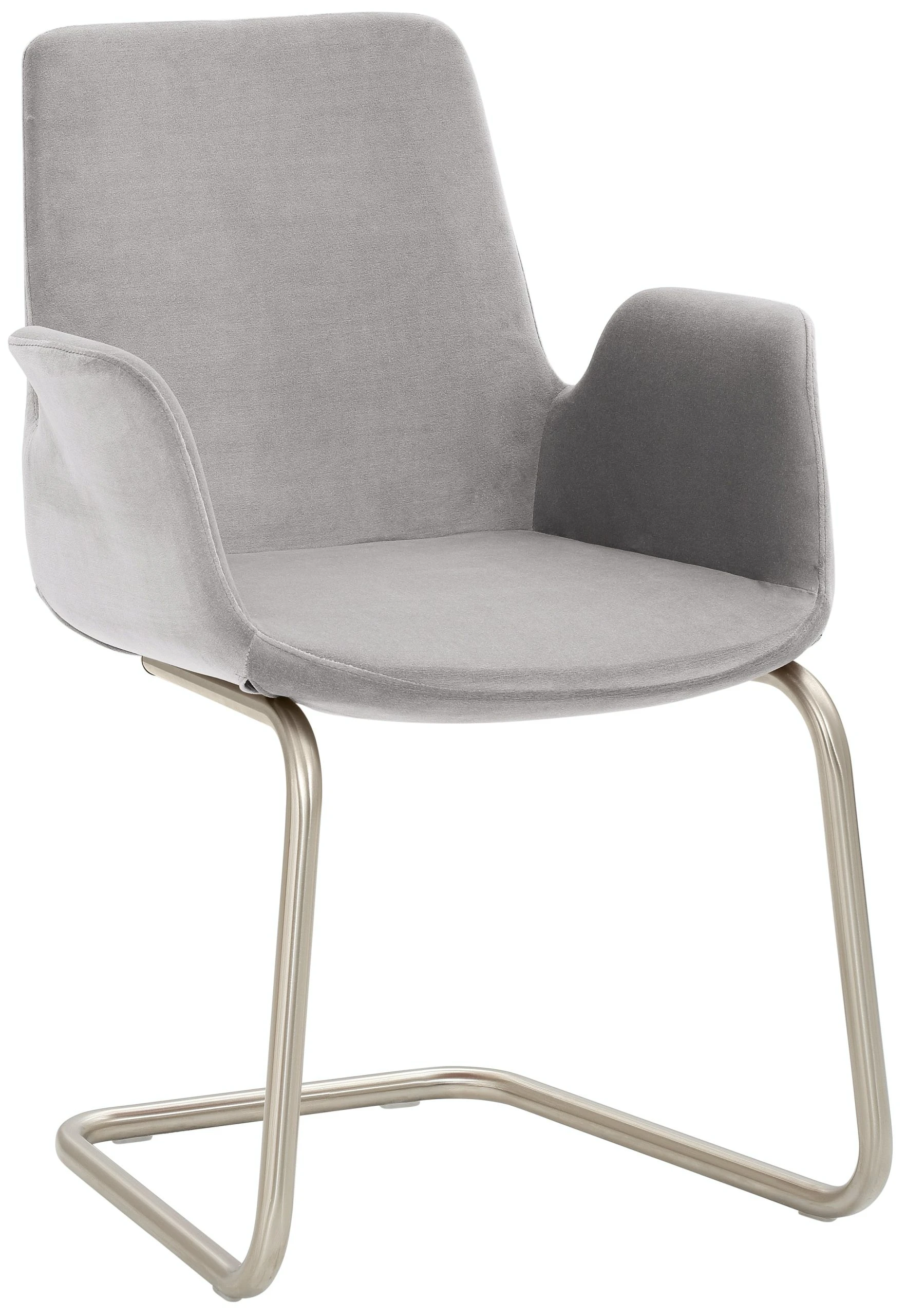 4-Fuß-Gestell, Chrom gebürstet Edelstahllook, mit integrierten Armlehnen, rundum gepolstert, Sitzhöhe 48 cm.