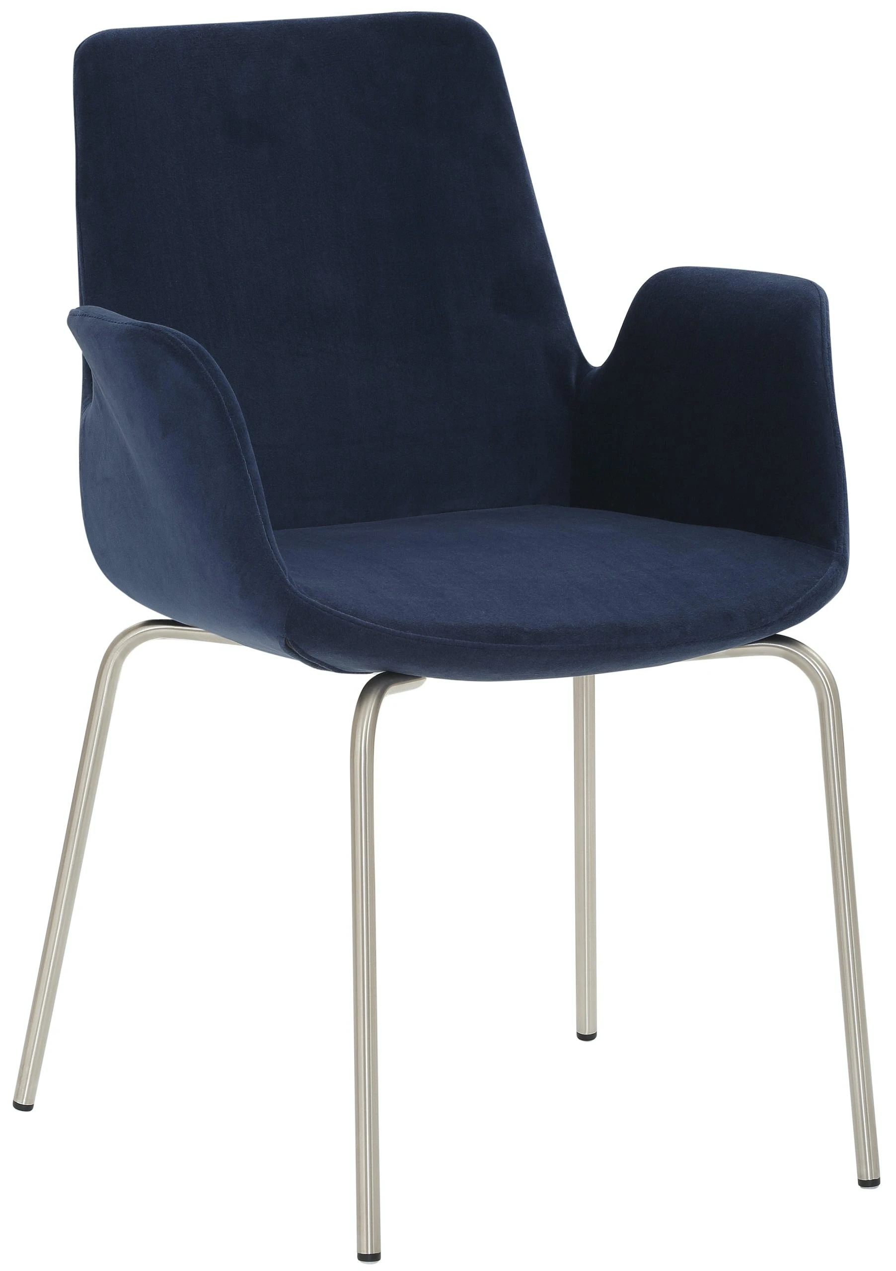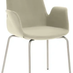 4-Fuß-Gestell, Chrom gebürstet Edelstahllook, mit integrierten Armlehnen, rundum gepolstert, Sitzhöhe 48 cm.