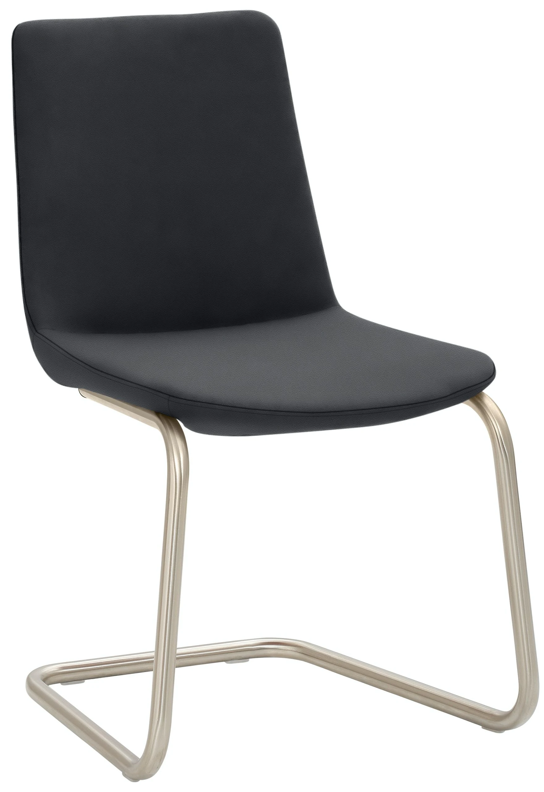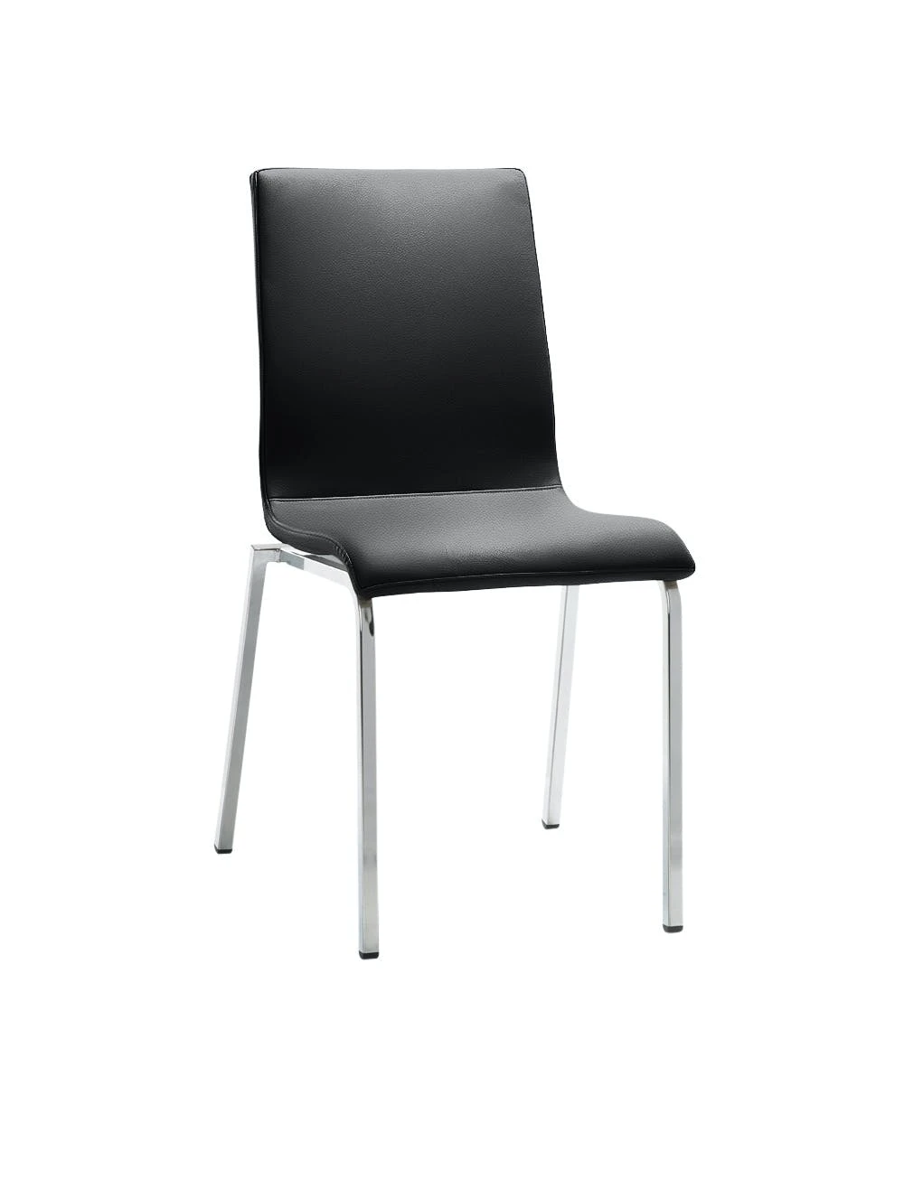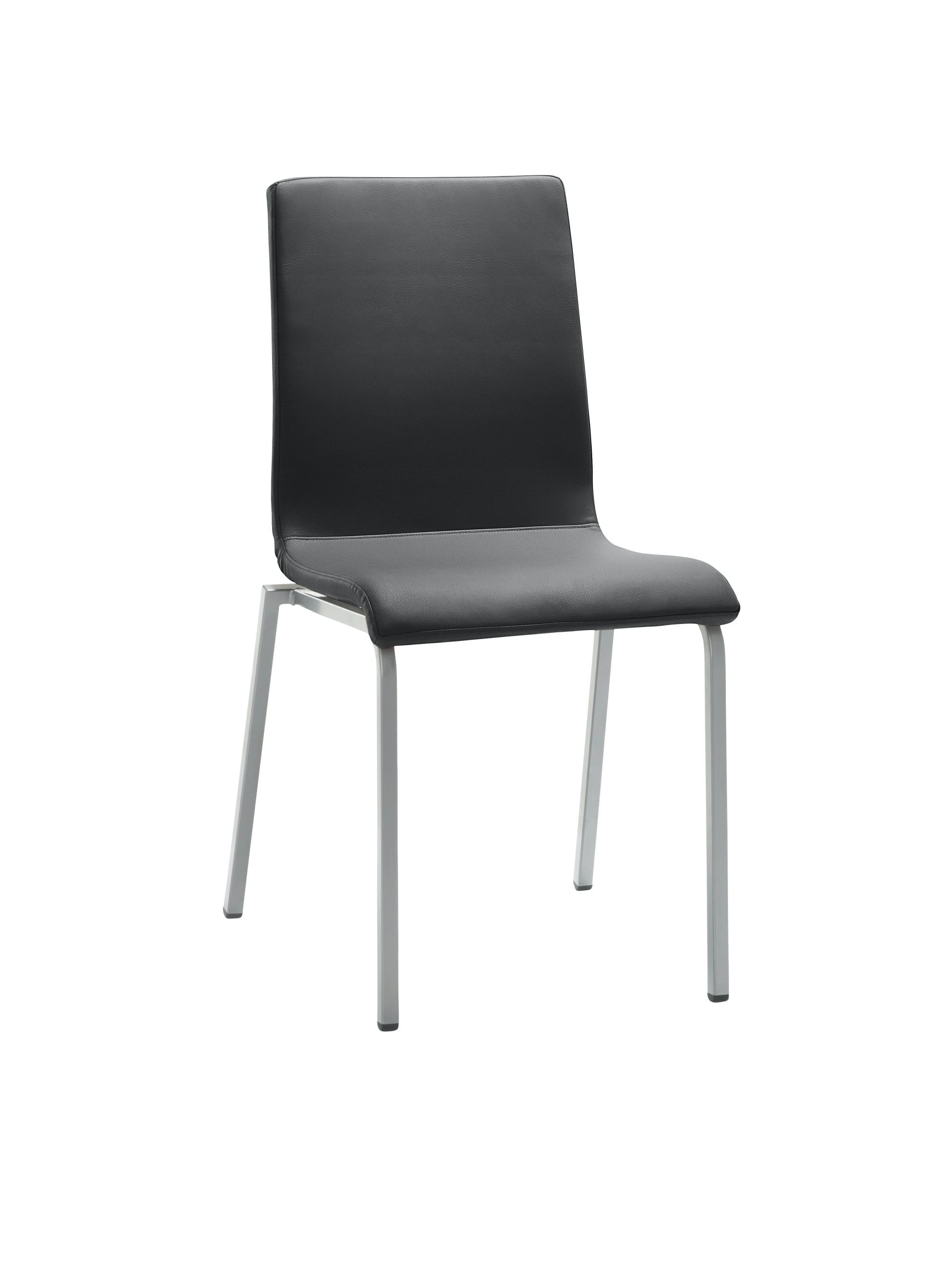 Gestell Chrom, Rechteckrohr, durchgehende Sitz-/Rückenformschale gepolstert, nicht stapelbar, Sitzhöhe 48 cm.