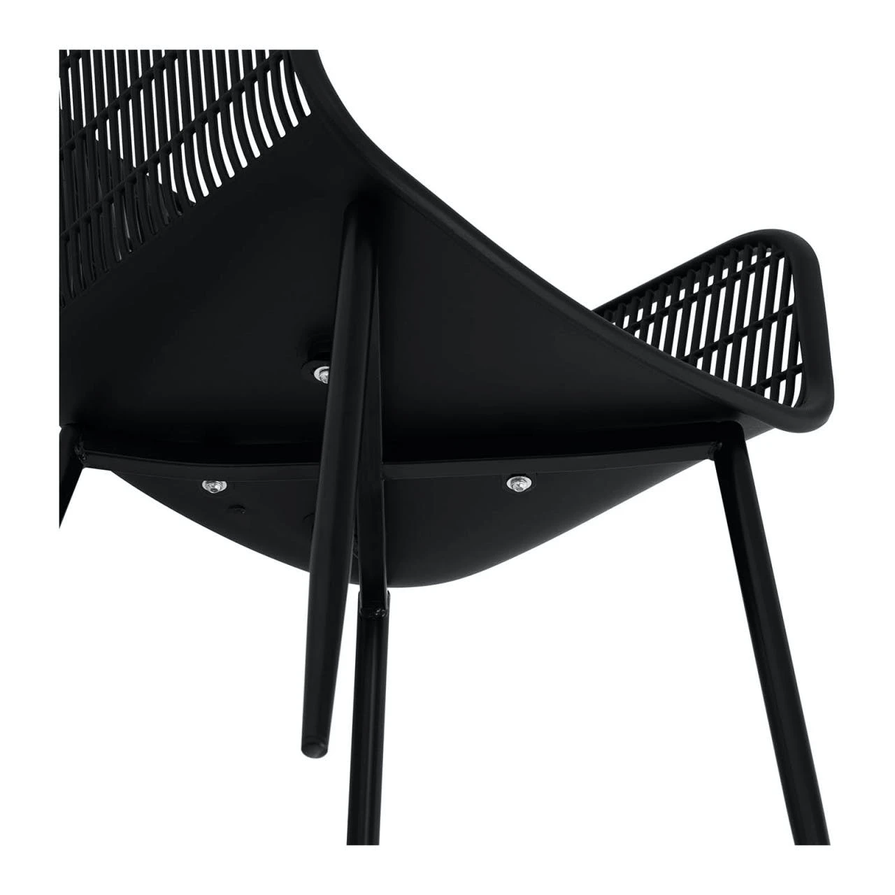 Der schwarze Lehnstuhl aus widerstandsfähigem Kunststoff hat eine 45 x 44 cm große und wohlgeformte Sitzfläche. Die Rückenpartie und die Seitenlehnen bestehen aus einem durchgängigen Gitter und sind dadurch besonders luftdurchlässig, was das Sitzen darauf auch im Sommer angenehm macht. Die Stühle in diesem 2er Set tragen jeweils ein Gewicht von bis zu 150 kg und knarren auch unter Maximalbelastung nicht. Der ergonomische Küchenstuhl mit hoher Rückenlehne lädt zum längeren Verweilen ein – sei es in einem stylishen Café oder im Pausenraum. Ihre Arme können Sie dabei auf den hohen Seitenlehnen ablegen und ausruhen.