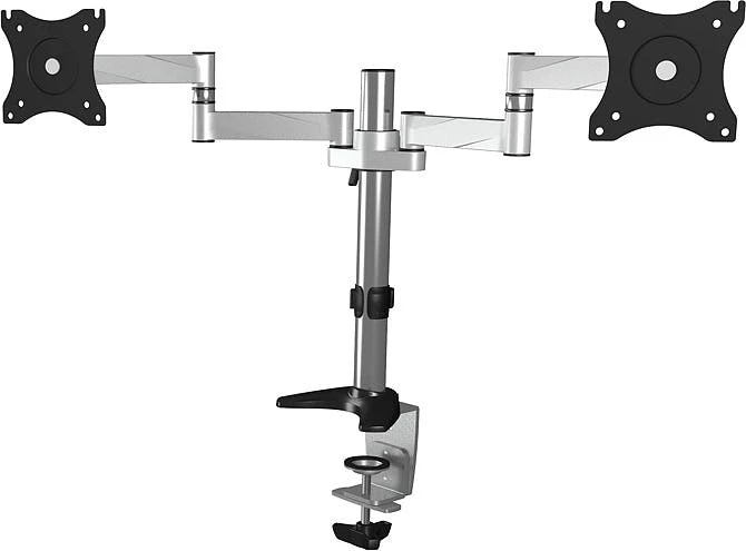 Geeignet ist die Halterung für 2 Monitore mit einer Bildschirmdiagonale bis zu 27″ (68 cm). Wichtig ist, dass diese ein Gewicht von maximal 8 kg nicht überschreiten dürfen. Mithilfe der Schraubklemme kann die Monitorhalterung an Tischplatten mit maximal 85 mm Stärke befestigt werden und schon hat man eine flexible und sichere Monitorhalterung installiert.