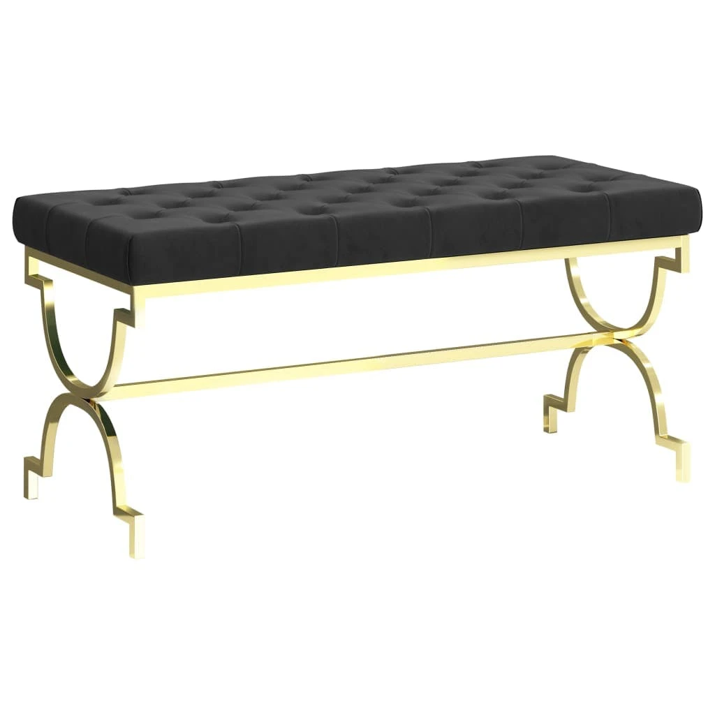 Die Flurbank ist mit Samt bezogen, der sich weich anfühlt und für eine bequeme Sitzposition sorgt. Die einzigartigen Edelstahlbeine in X-Form tragen zur Robustheit und Stabilität der Bank bei.