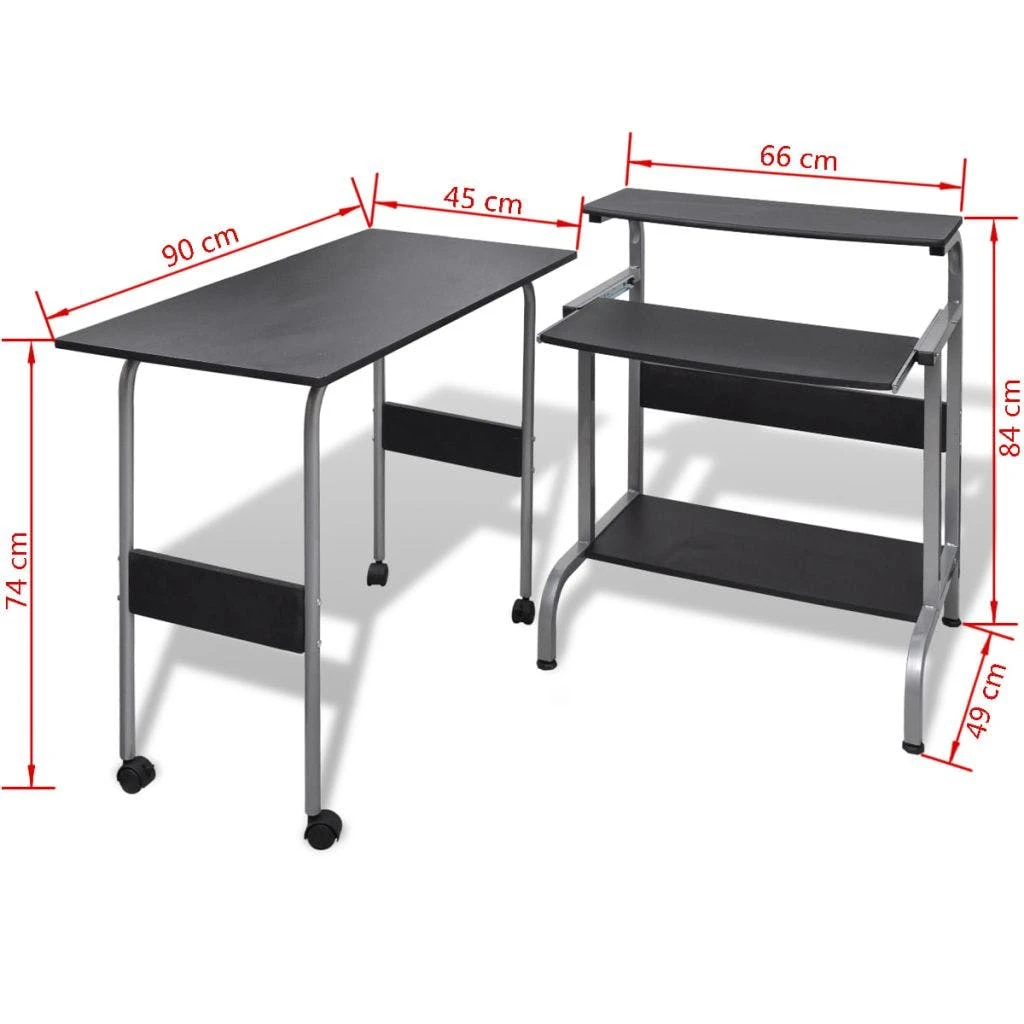 Dieser kompakte Computertisch mit Schreibtisch in ansprechender Optik bietet moderne Eleganz und Funktion zugleich. Dank seines stilvollen Designs ist er ein echter Blickfang in Ihrem Raum. Die große Arbeitsfläche ermöglicht es Ihnen, den Computer und Schreibmaterialien bequem zu verwenden. Außerdem verfügt der Computertisch über 3 Ablagen für Ihren LCD-Monitor, Tastatur und CPU Turm, schafft dabei Ordnung und Übersicht mit minimalem Platzbedarf. Der Schreibtisch bietet Ihnen zusätzliche Organisation- und Arbeitsbereich. Er könnte auch in der Computer-Schreibtisch zusammengebaut werden, um eine neue Konfiguration zu bilden!Die installierten Rollen sorgen für verbesserte Mobilität. Der Computertisch überzeugt durch stabile Spannplatte und pulverbeschichtetes Stahlgestell, all dies garantiert einen jahrelangen Gebrauch.